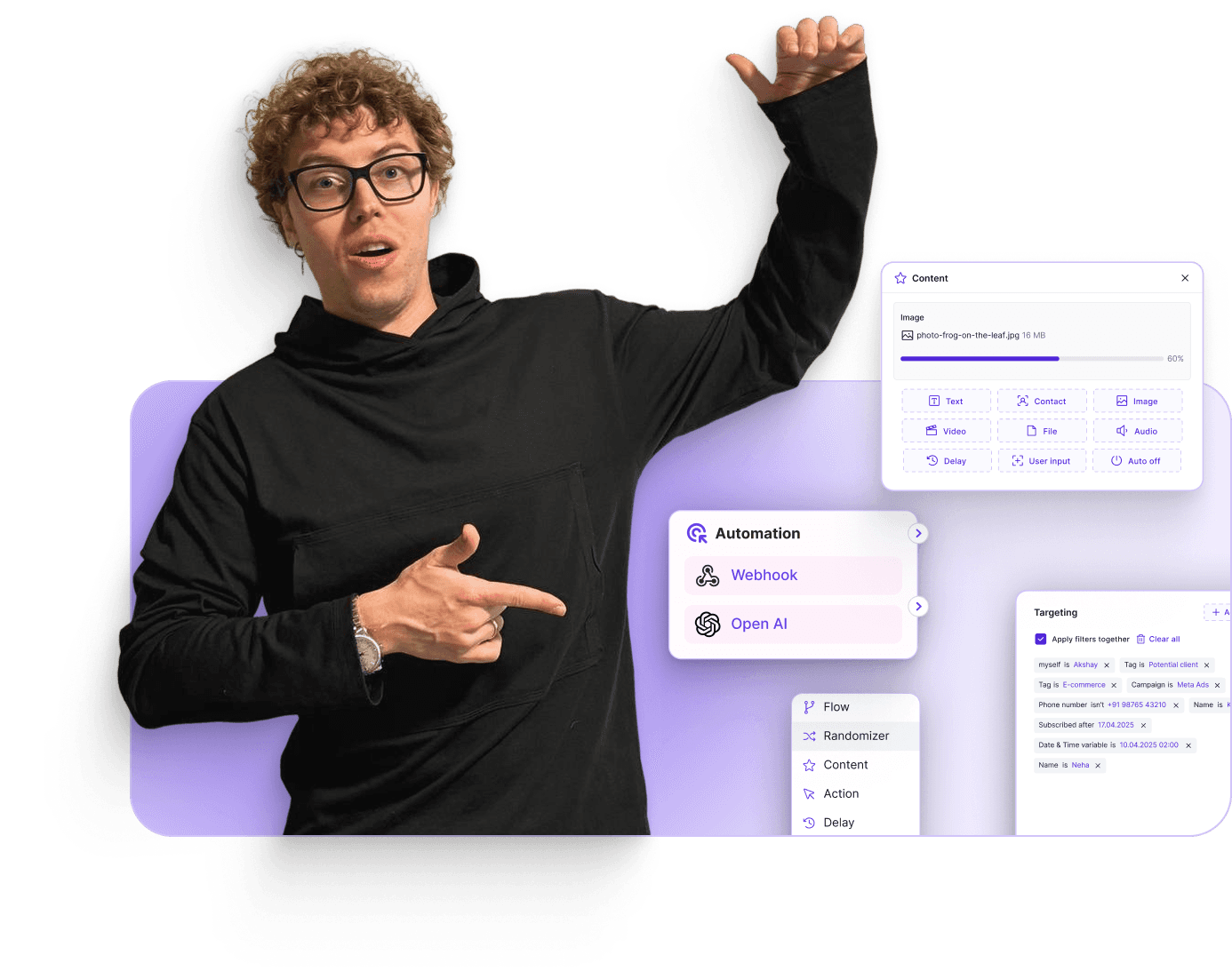 Mass offers — Holiday promos, Black Friday, product updates—send them as broadcasts tailored to each customer’s interests